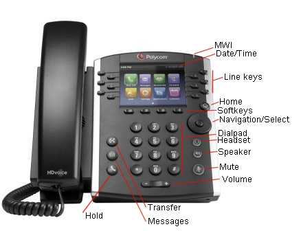 12-key dial pad, home, speaker, mute, headset, volume, messages, hold, transfer